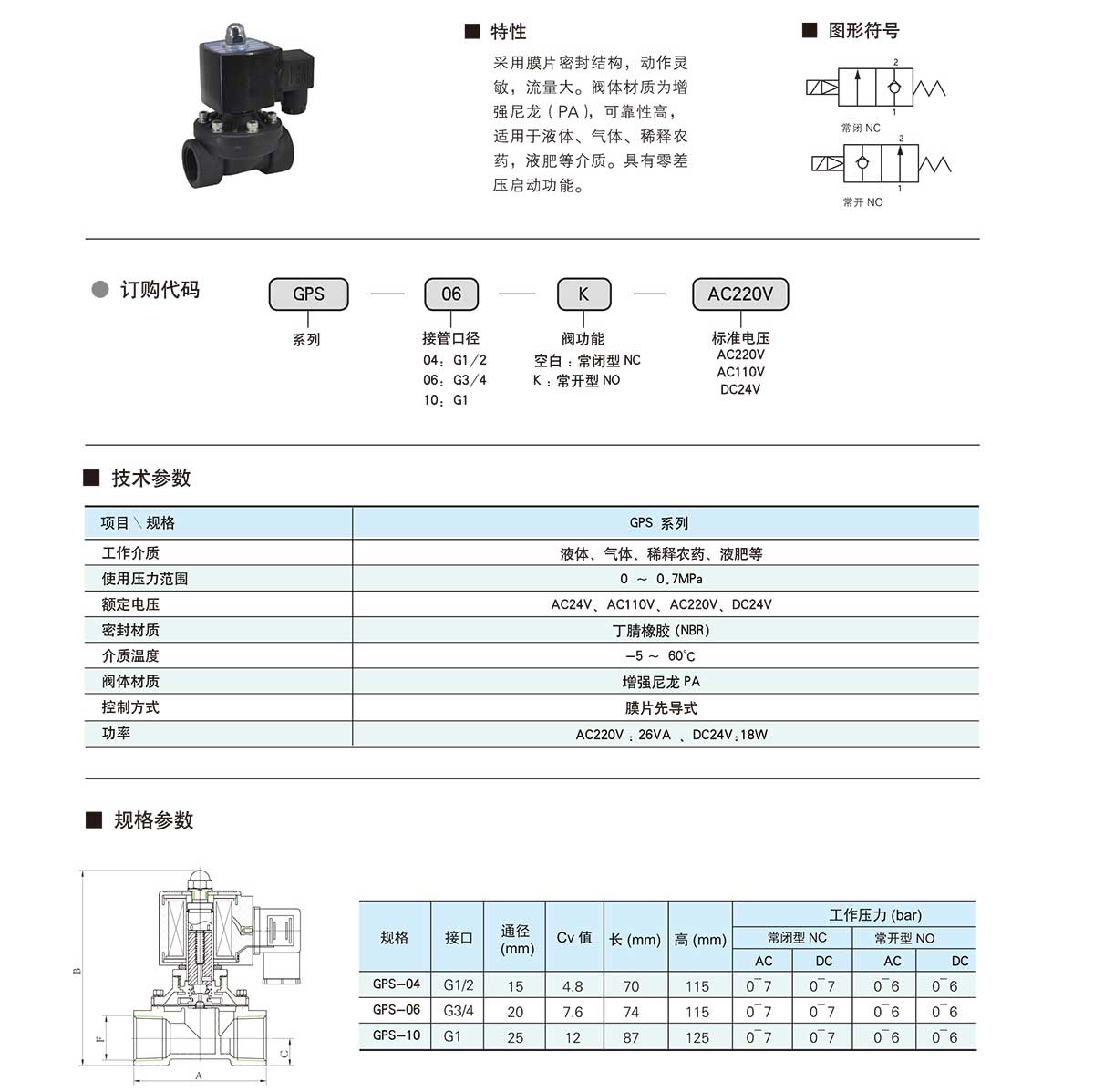 الخصائص : اعتماد هيكل الختم الحجاب الحاجز ، حركة حساسة ، تدفق كبير . الجسم صمام مصنوعة من النايلون المقوى ( السلطة الفلسطينية ) ، وموثوقية عالية ، ومناسبة للسوائل والغازات ، تمييع المبيدات والأسمدة السائلة وغيرها من وسائل الإعلام . صفر فرق الضغط ابتداء من وظيفة .