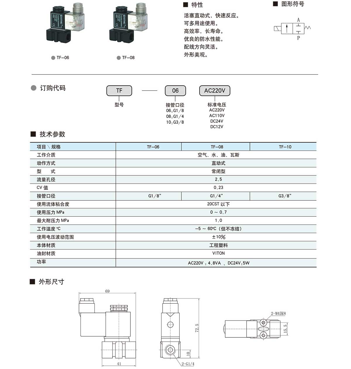 الخصائص : المكبس مباشرة ، والاستجابة السريعة ، متعددة الأغراض ، وكفاءة عالية ، والخدمة الطويلة في الحياة ، وحسن الأداء للماء ، مرنة الأسلاك الاتجاه ، والمظهر الجميل .