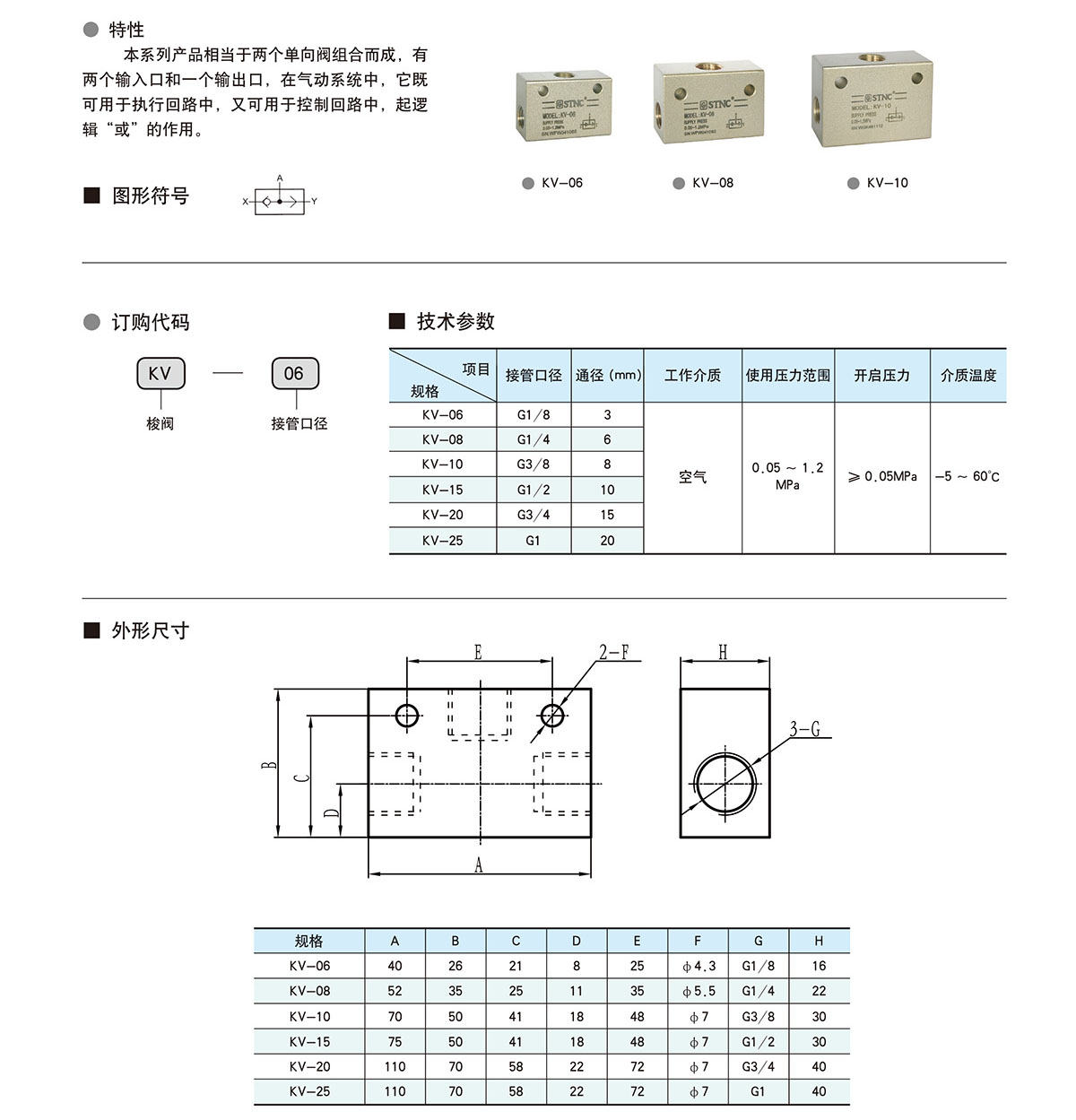 الميزات : هذه السلسلة من المنتجات ما يعادل اثنين من الصمامات في اتجاه واحد ، واثنين من المدخلات والمخرجات ، في نظام هوائي ، ويمكن استخدامها في تنفيذ حلقة ، حلقة التحكم ، منطق " أو " وظيفة .