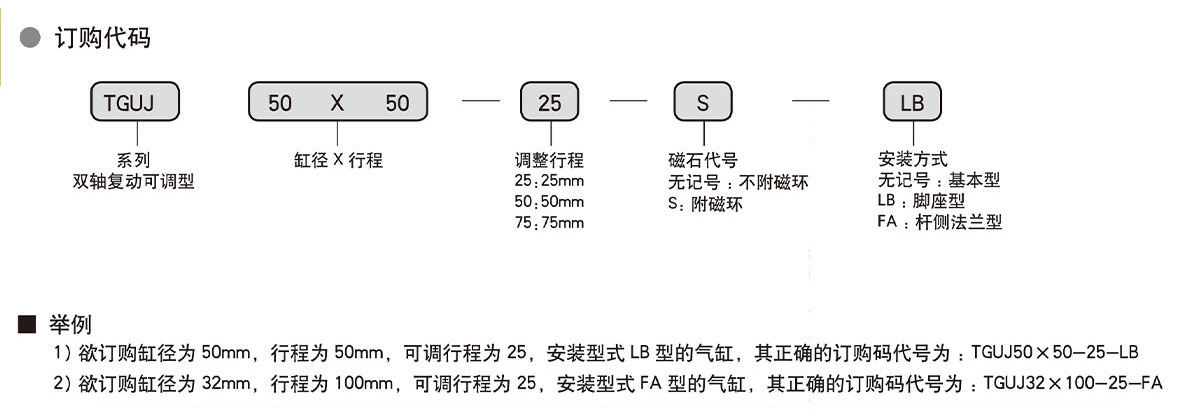 TGUJ係(xì)列雙軸可調無(wú)拉杆式標準氣缸