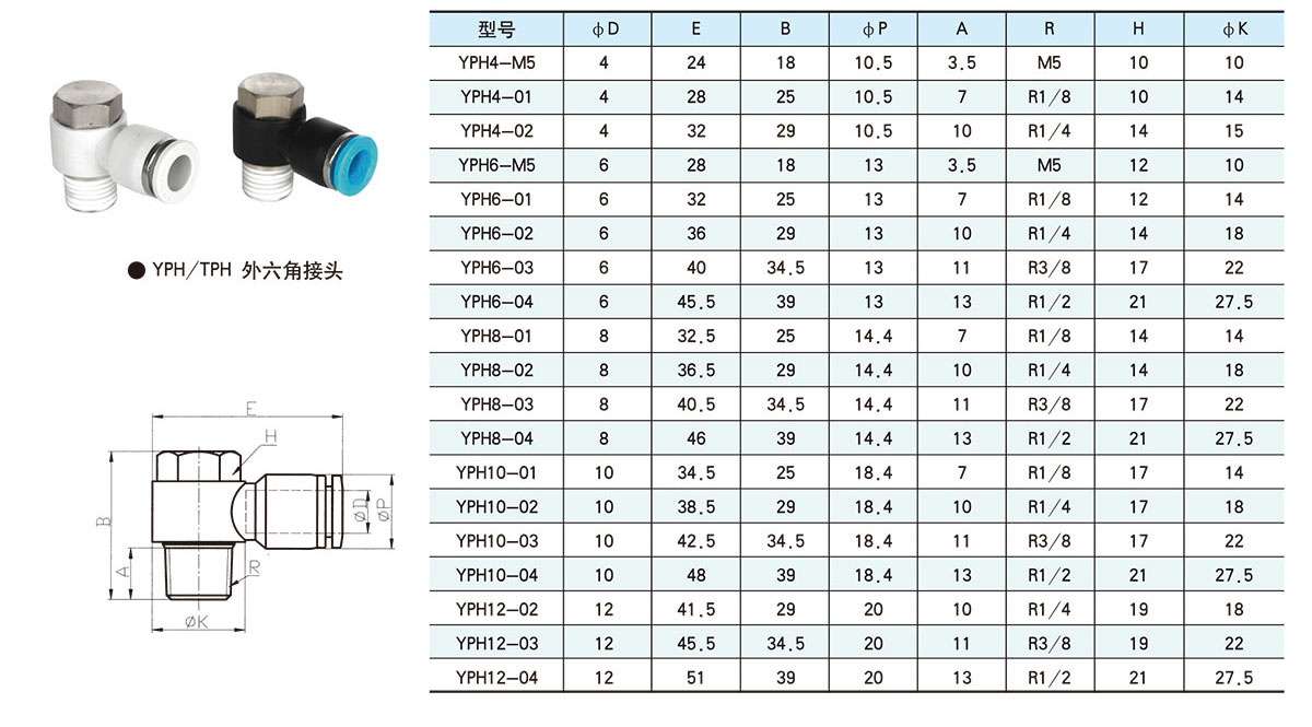 Conector hexagonal exterior yph / TPH